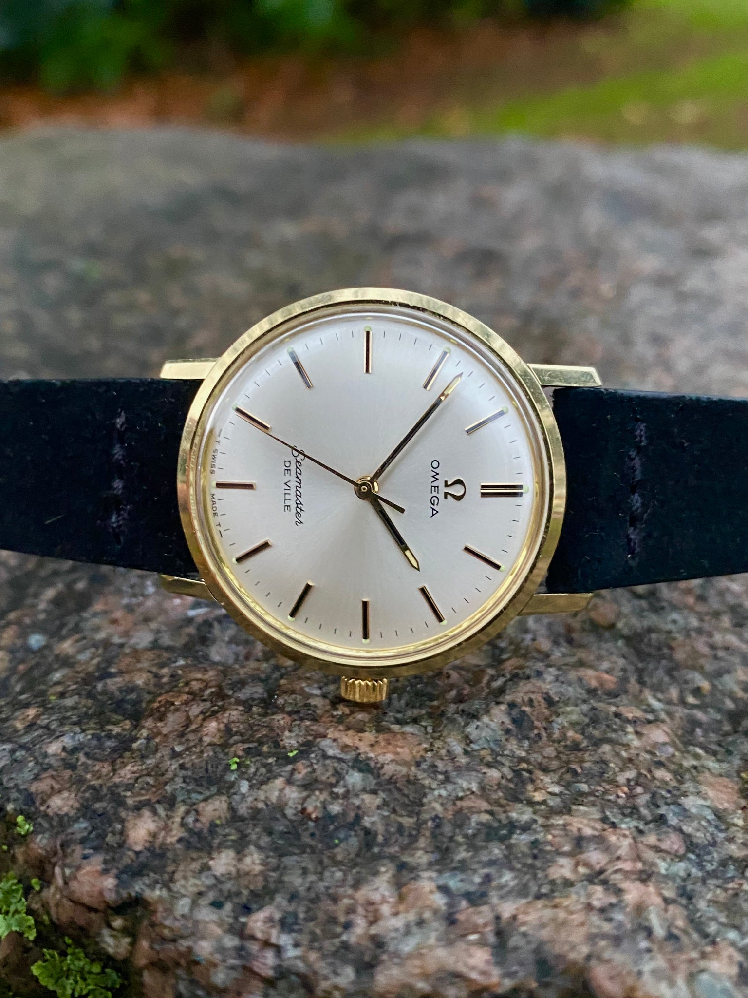 The dial is a flawless ”sunburst” dial in an amazing condition, it really is as good as it seems in the pictures - clean and elegante. Rare configuration with black inlay in every index’ and the hands.